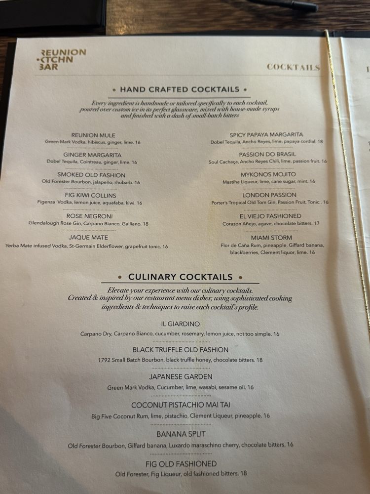 Welcome to Reunion Ktchn Bar, a cocktail bar specializing in breakfast, brunch, and seafood in Aventura, FL. With a diverse menu offering vegan options, Reunion Ktchn Bar provides a unique dining experience for all. The establishment includes various amenities such as outdoor seating, free Wi-Fi, and an extensive bar, creating a casual yet upscale atmosphere. Customers rave about the exceptional service and delicious food, with dishes like Honey Miso Chilean Sea Bass and Old Fashioned Almond Pancakes standing out. The ambiance, including artistic installations and cozy seating, adds to the overall enjoyable experience. Reunion Ktchn Bar is not just a place to dine; it's a destination for food enthusiasts seeking a remarkable culinary adventure.